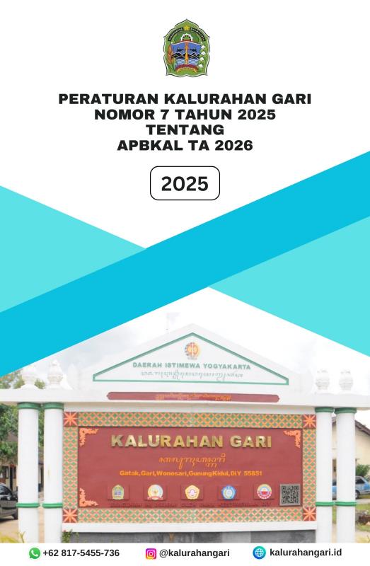 SIDA_GARI - Peraturan Kalurahan Gari tentang APBKal tahun 2026 sudah ditetapkan pada tanggal 30 Desember 2025 adapun rincian Anggaran Pendapatan dan Belanja Kalurahan Gari Tahun Anggaran 2026 adalah sebagai berikut :